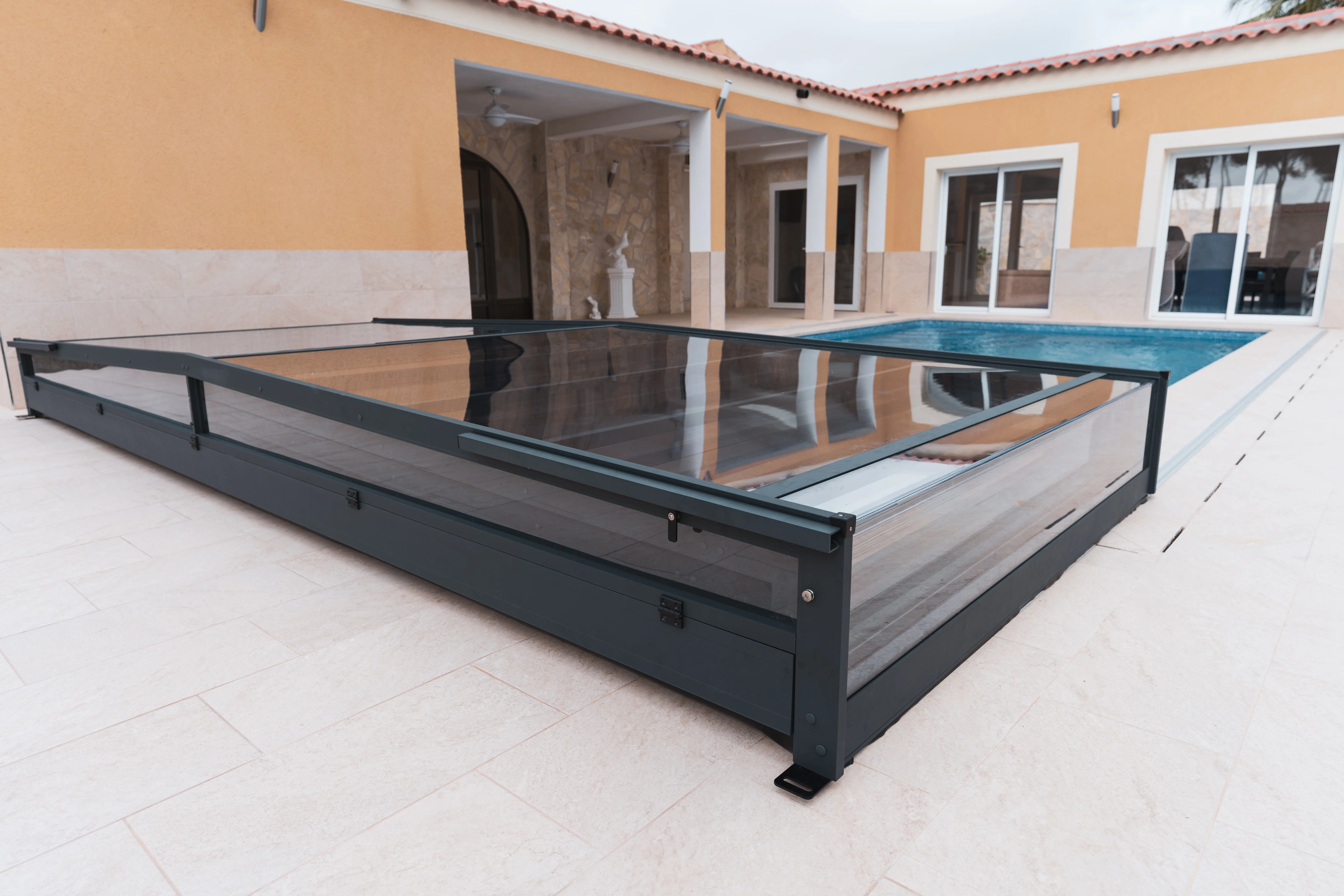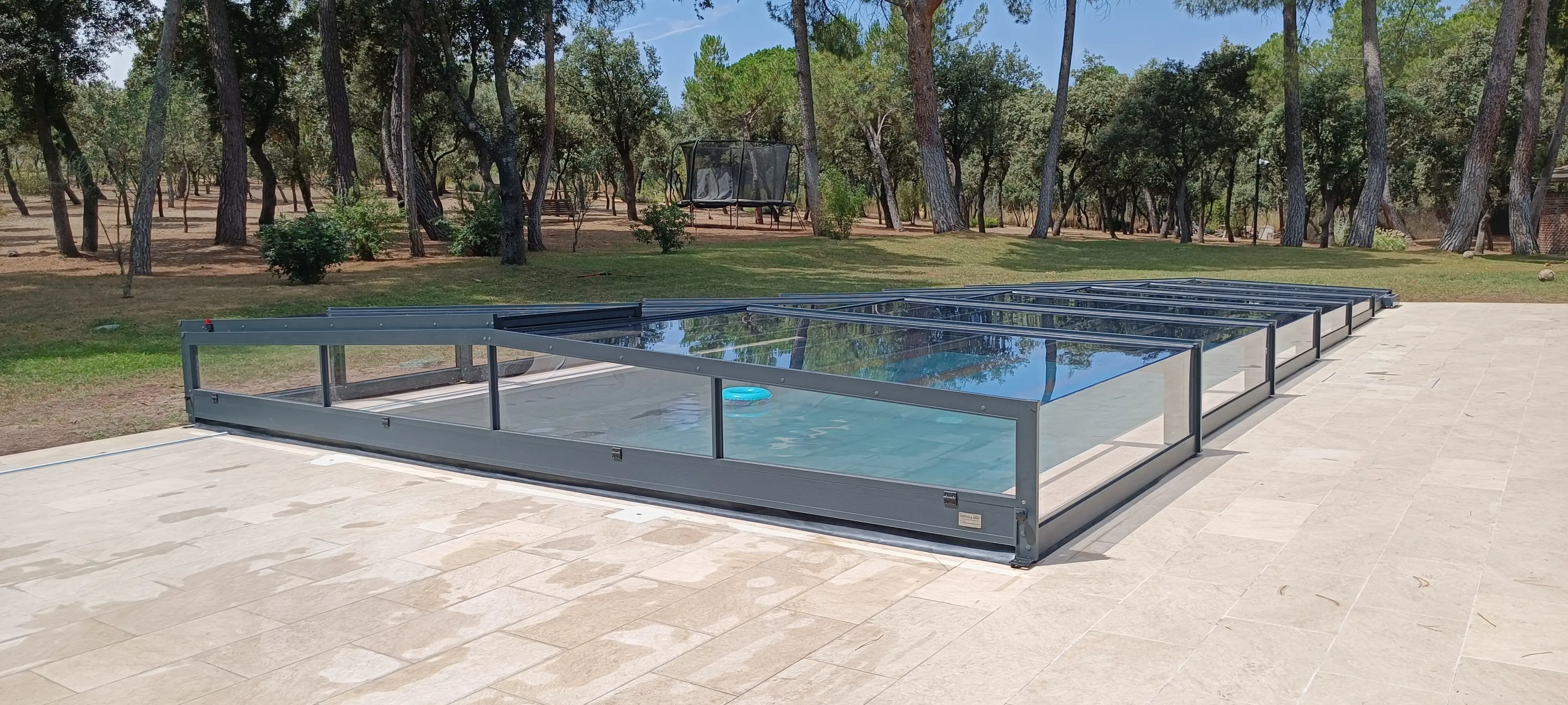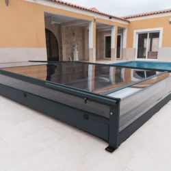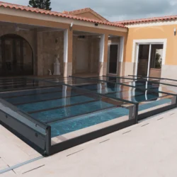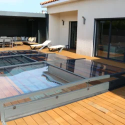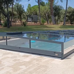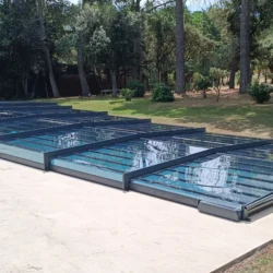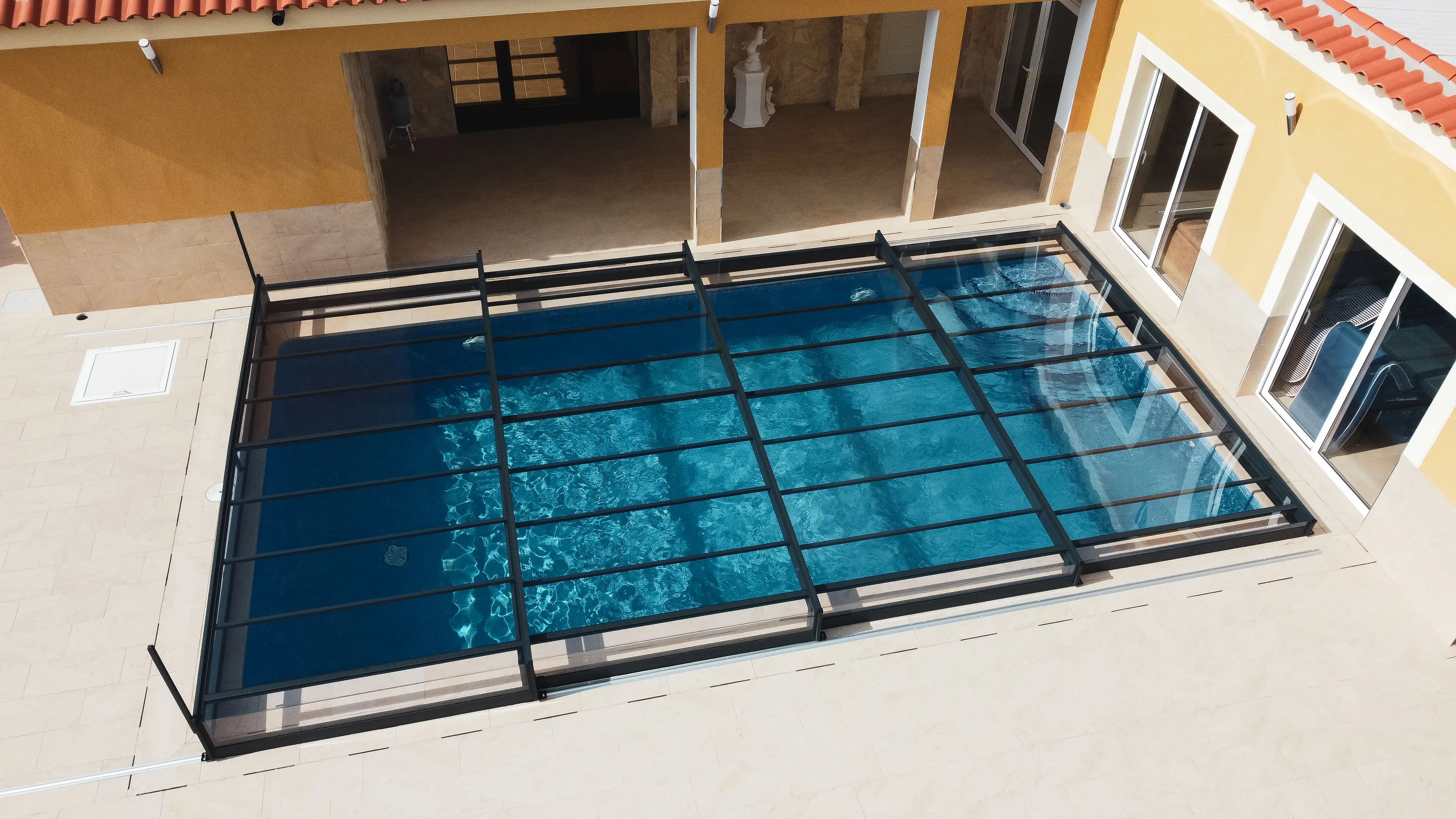 Amb el seu sistema de guia exclusiu i un acabat complet en policarbonat compacte o cel·lular al sostre, proporciona una protecció eficient i discreta per a la teva piscina durant tot l’any.