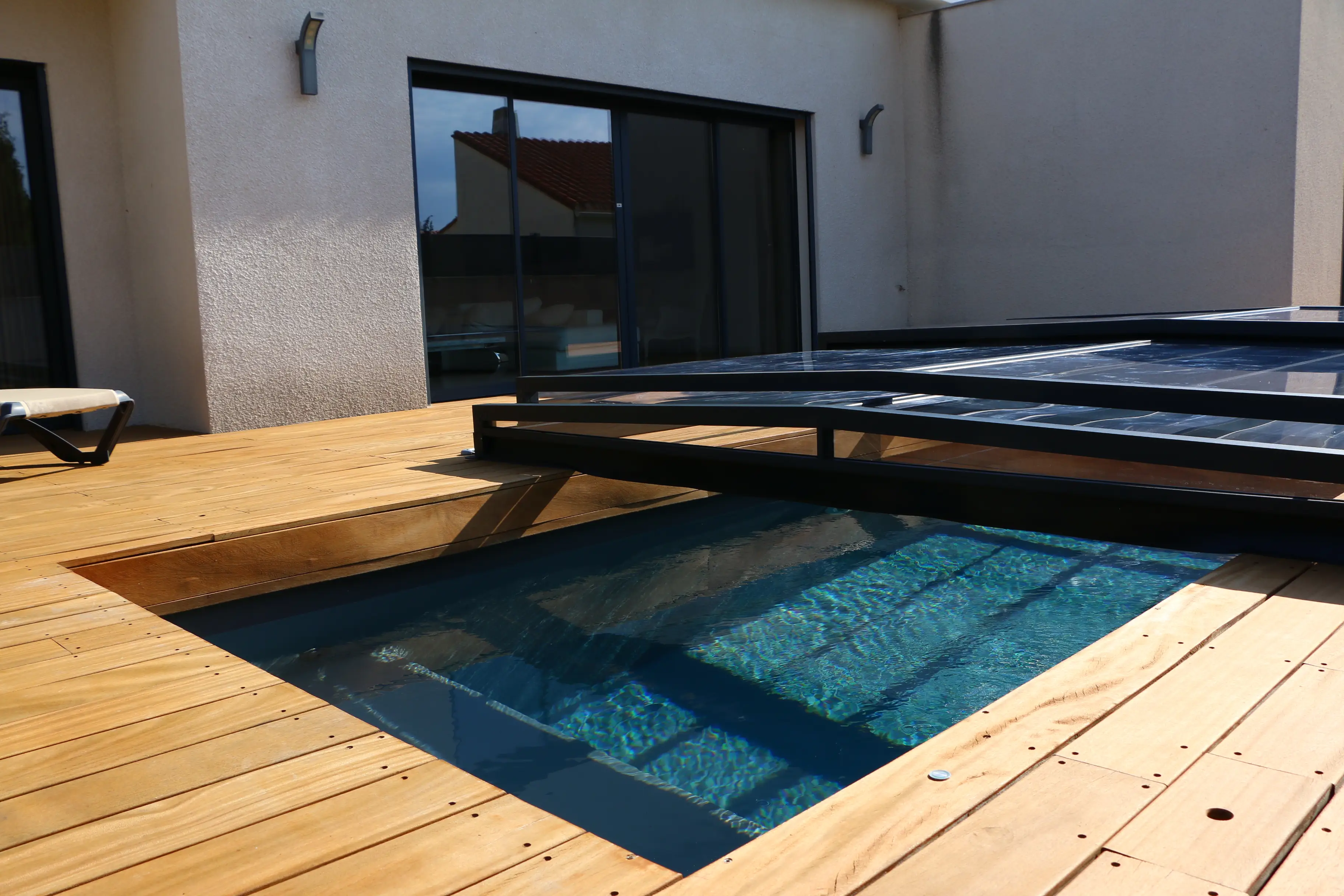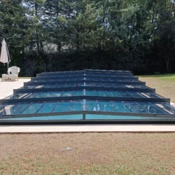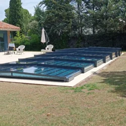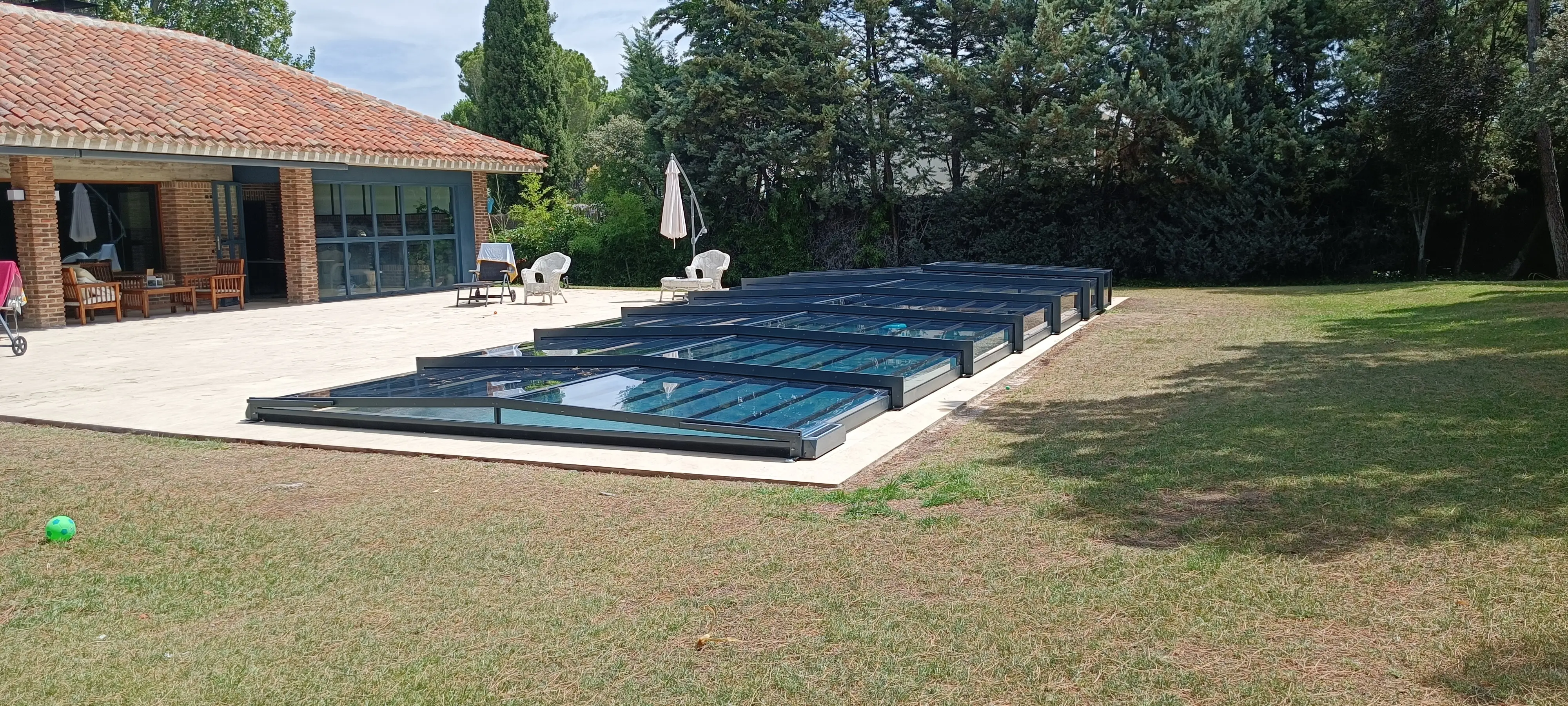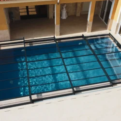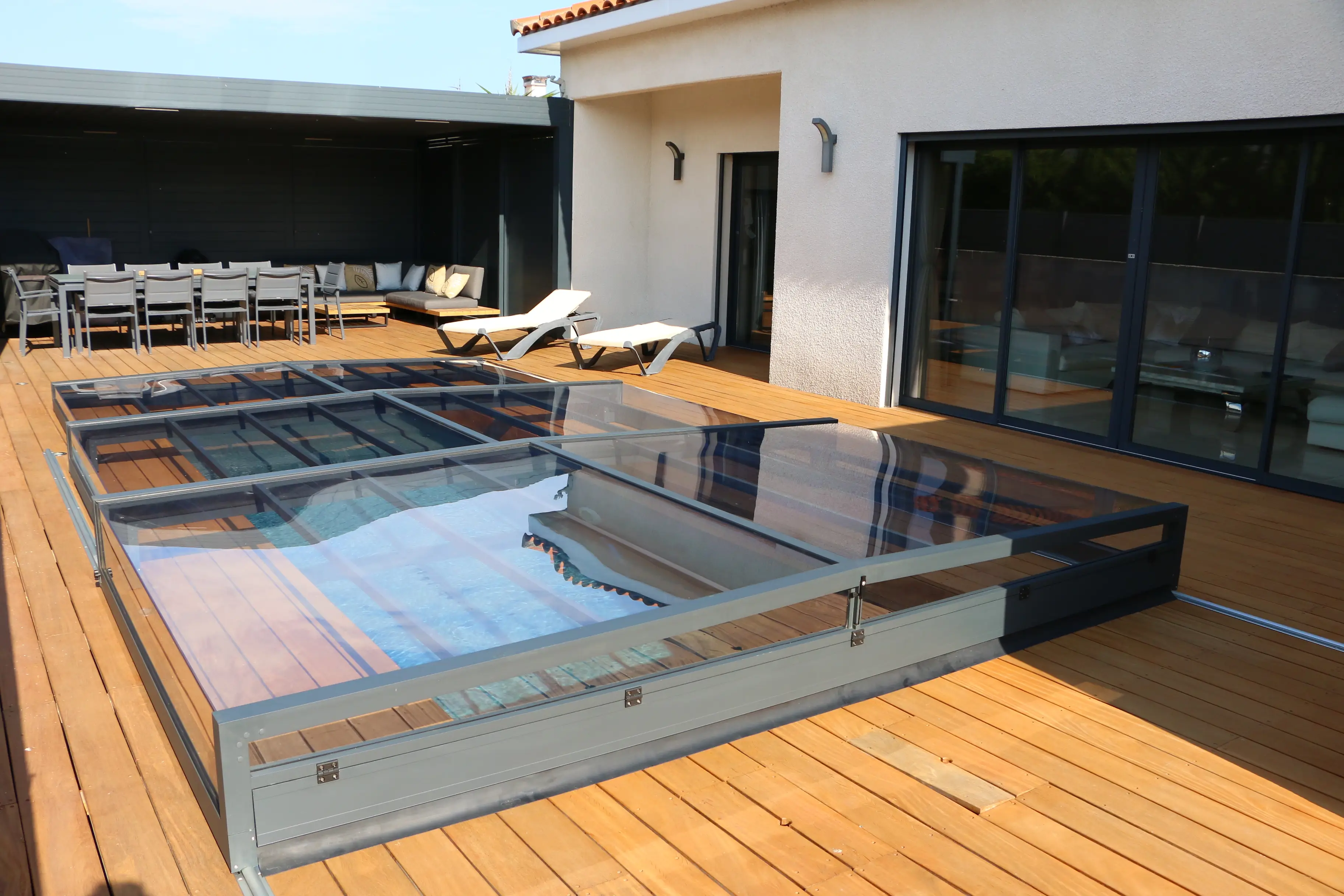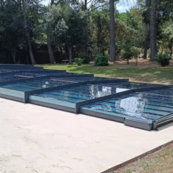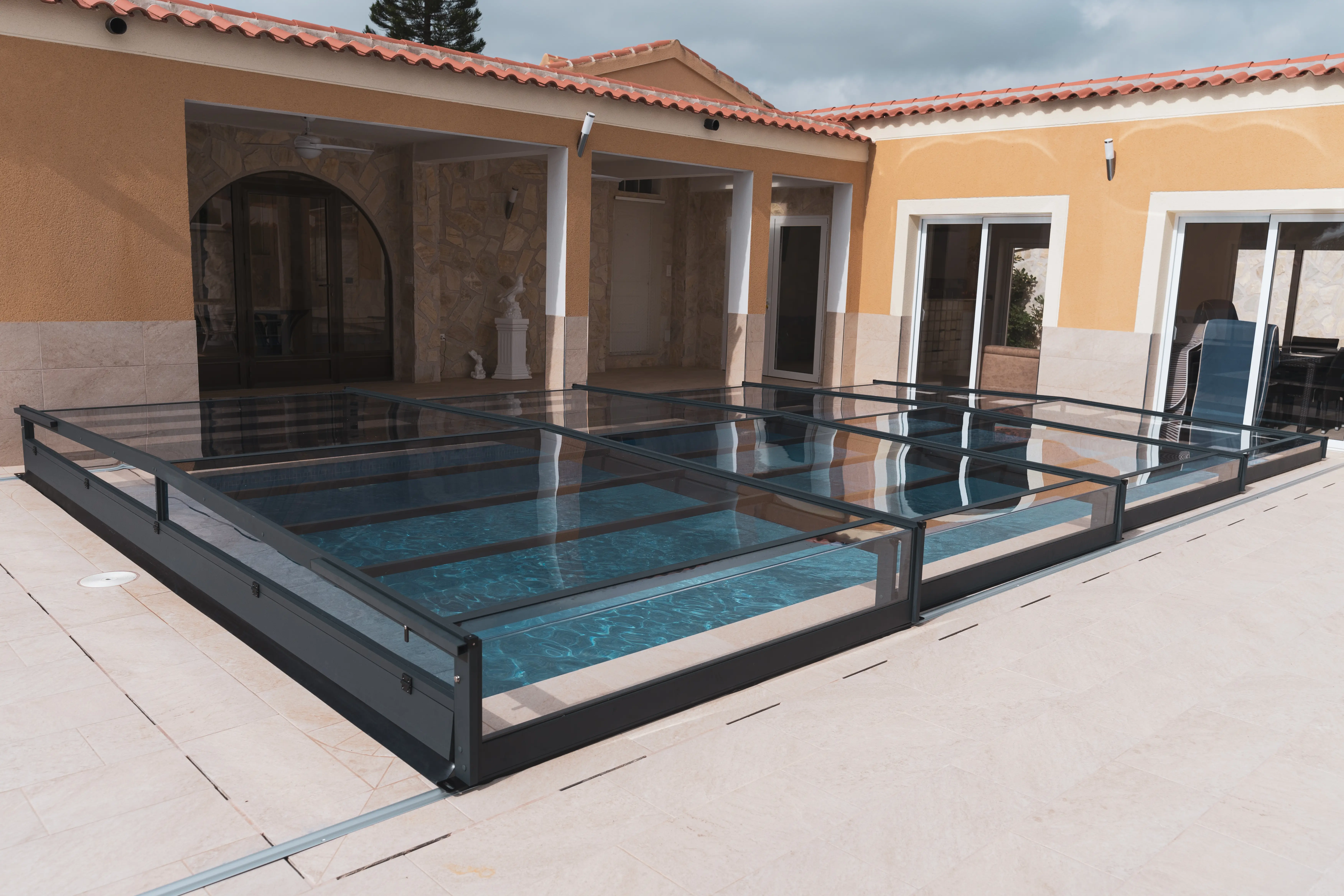 Amb el seu sistema de guia exclusiu i un acabat complet en policarbonat compacte o cel·lular al sostre, proporciona una protecció eficient i discreta per a la teva piscina durant tot l’any.