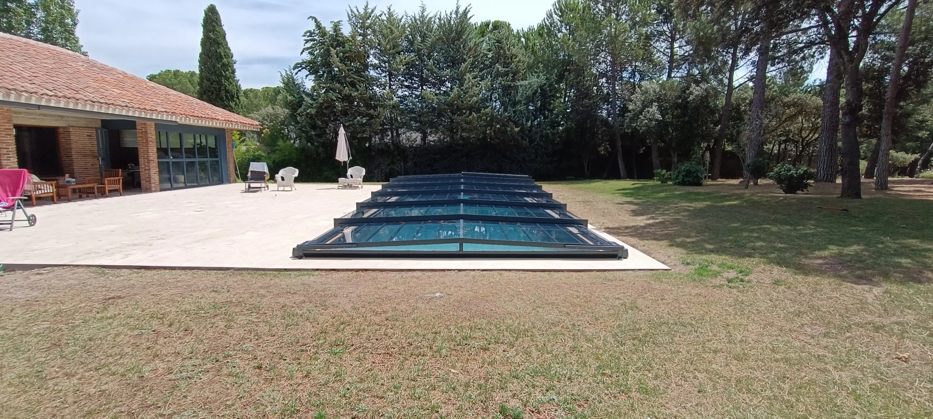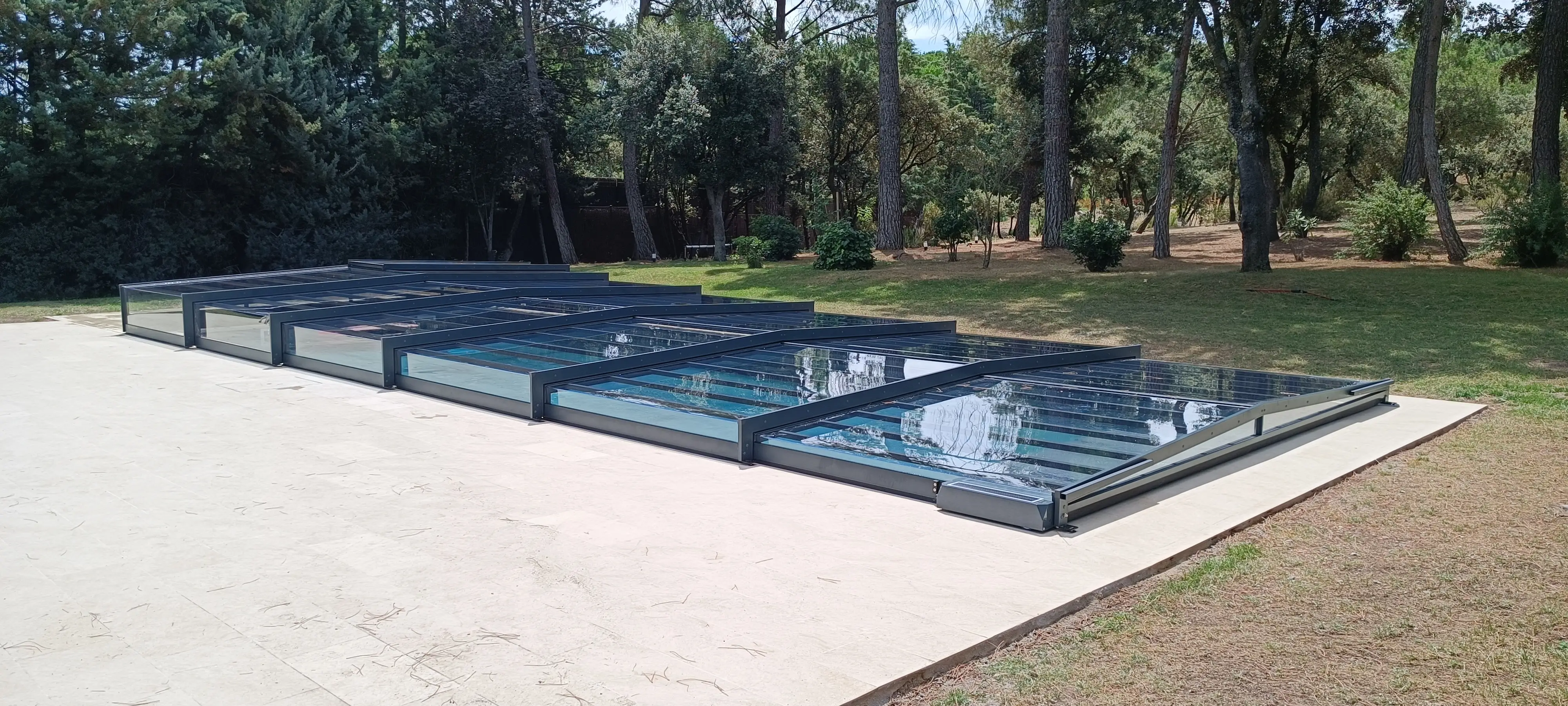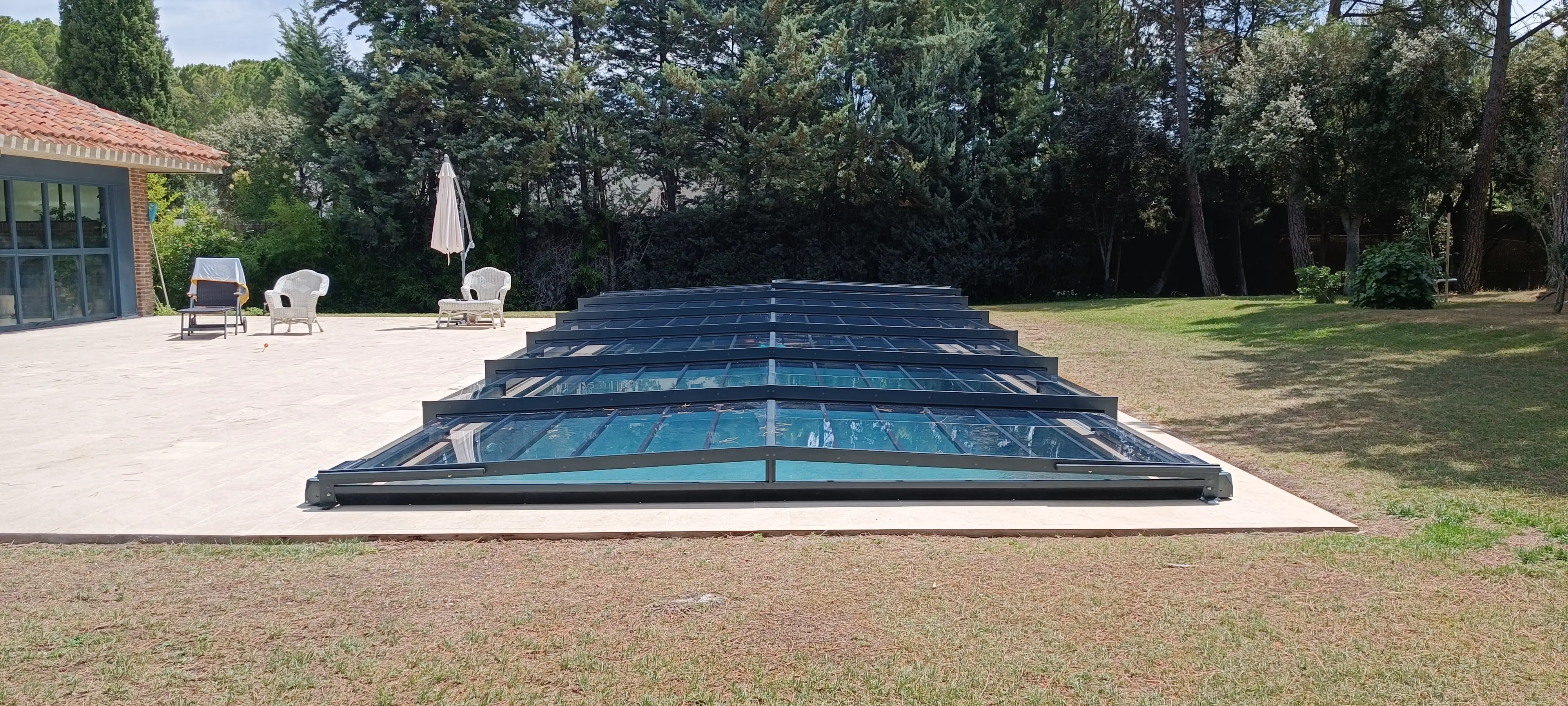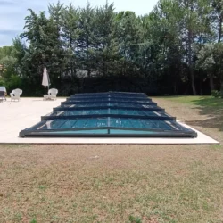 Amb el seu sistema de guia exclusiu i un acabat complet en policarbonat compacte o cel·lular al sostre, proporciona una protecció eficient i discreta per a la teva piscina durant tot l’any.