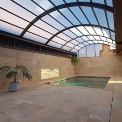 La calidad de los materiales de nuestros techos para piscinas, con una estructura de aluminio cerrada con policarbonato, marca la diferencia en confort y seguridad para tu piscina.