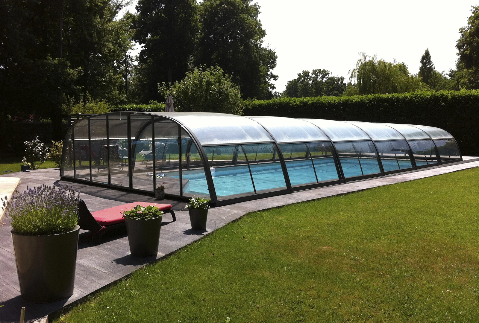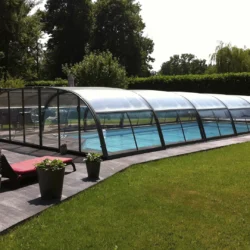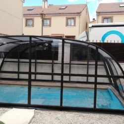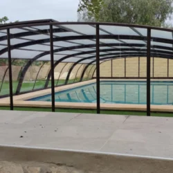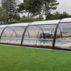 La cubierta de piscina Velsa Élite es semialta, con estructura de aluminio y cerrada con policarbonato en techo, laterales y frontales. Lo que permite que el agua de tu piscina mantenga una temperatura agradable durante todo el año.